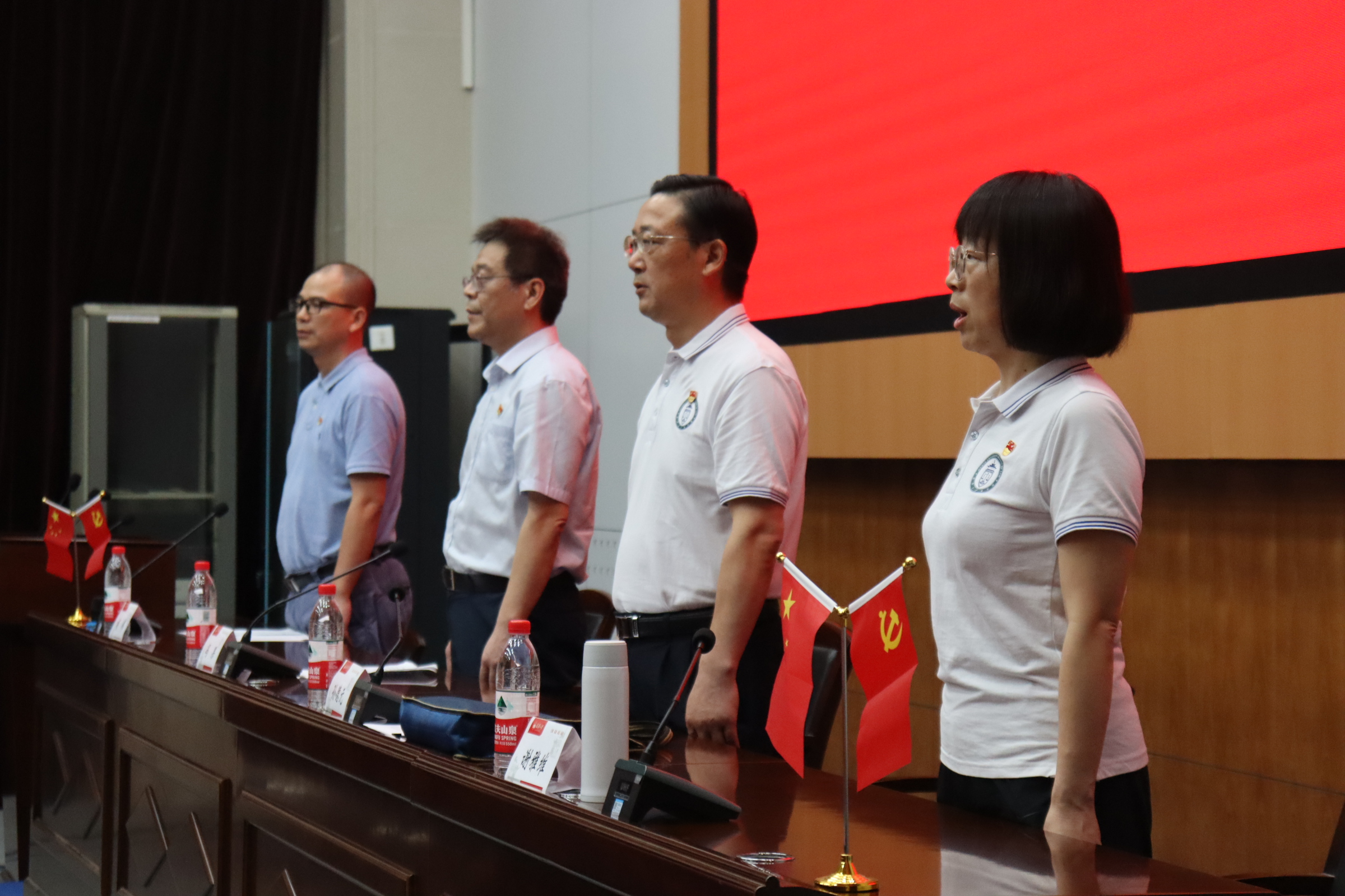 党委副书记谢雅维领誓,全体党员重温入党誓词。