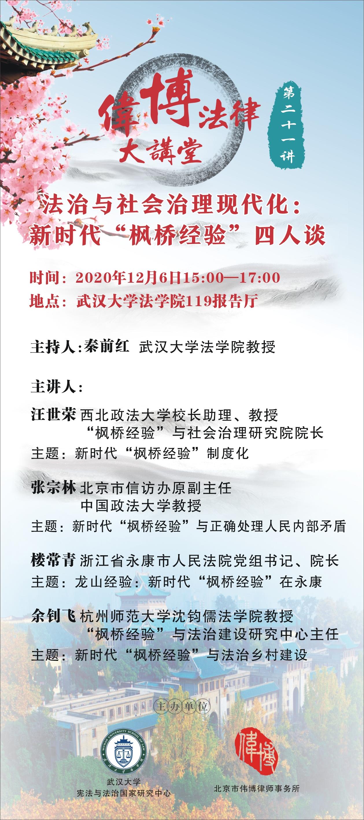 【“伟博法律大讲堂”第二十一讲】法治与社会治理现代化:新时代“枫桥经验”四人谈