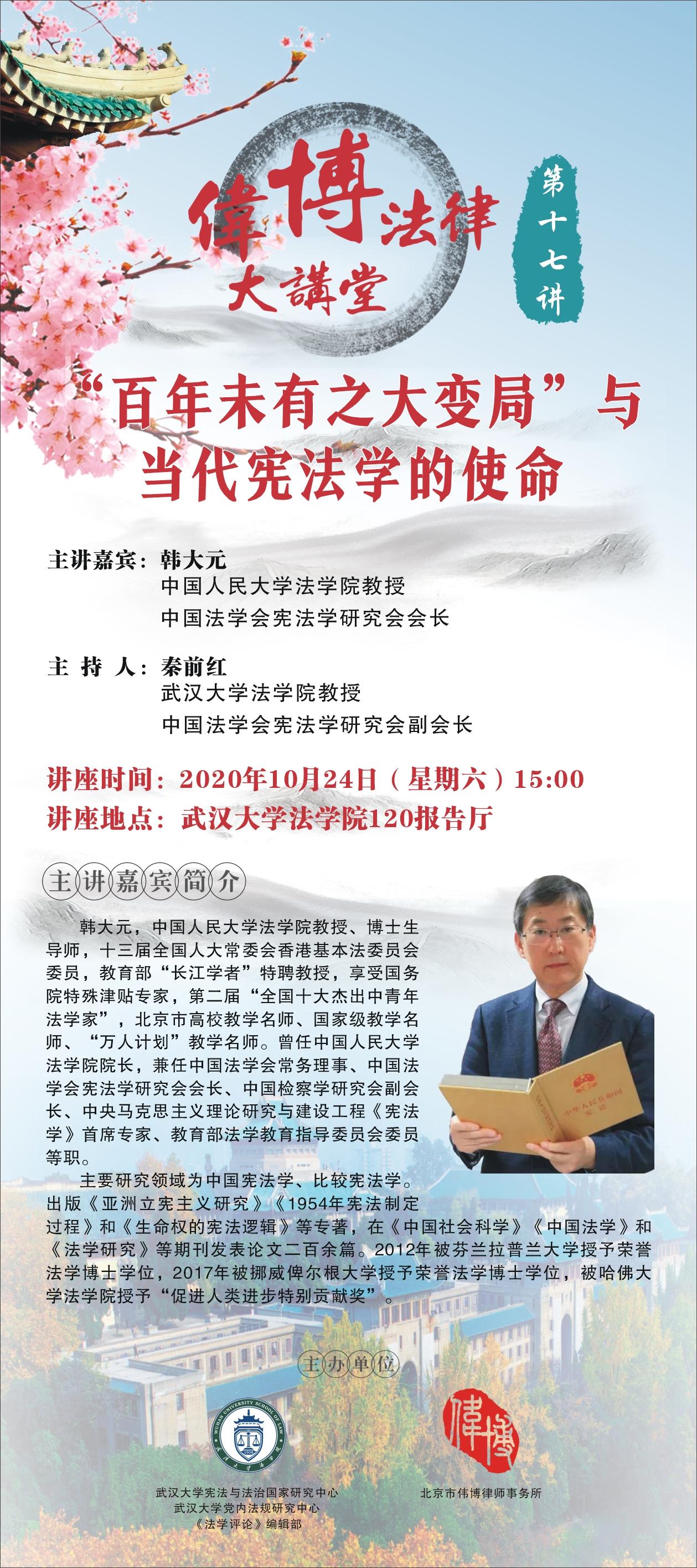 【“伟博法律大讲堂”第十七讲】韩大元:“百年未有之大变局”与当代宪法学的使命