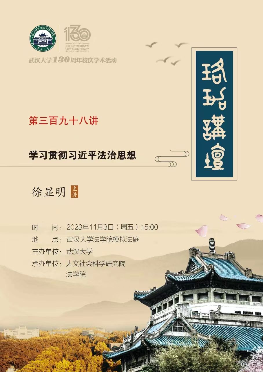 【珞珈讲坛第三百九十八讲】徐显明:学习贯彻习近平法治思想