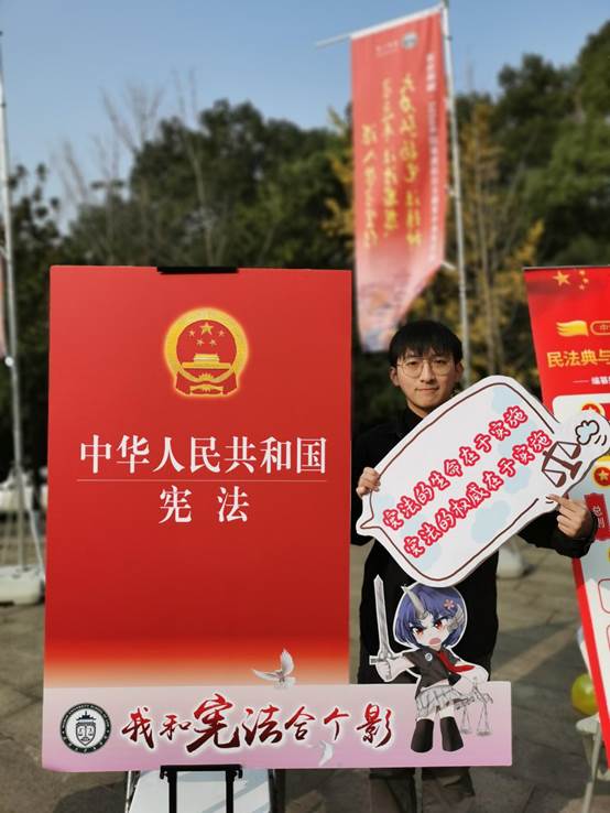 宪法学与行政法学教研室彭超老师,生日与国家宪法日同一天,作为一名研习宪法学并以宪法学研究为志业的老师,这一天于他而言被赋予特别的意义,彭超老师有幸参与特别方阵与40位师生一起表达他们对国家宪法日所赋予使命的担当。