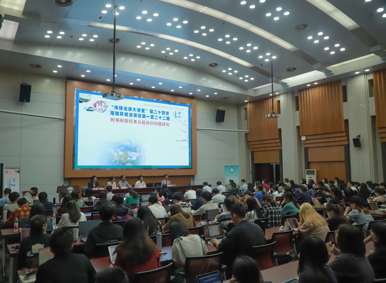 高利红教授,环境法所所长秦天宝教授、陈海嵩教授、李广兵副教授等与在校博士、硕士研究生、兄弟院校及专业的学生,湖北省、武汉市、洪山区、东湖新区检察院的代表以及律师界的代表200余人参加了此次讲座。