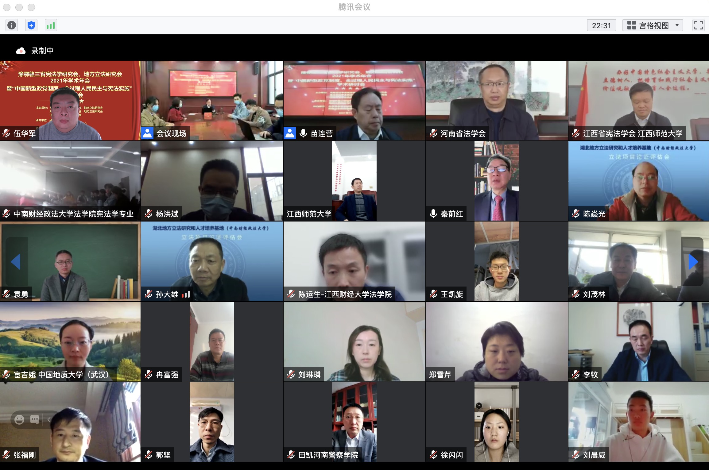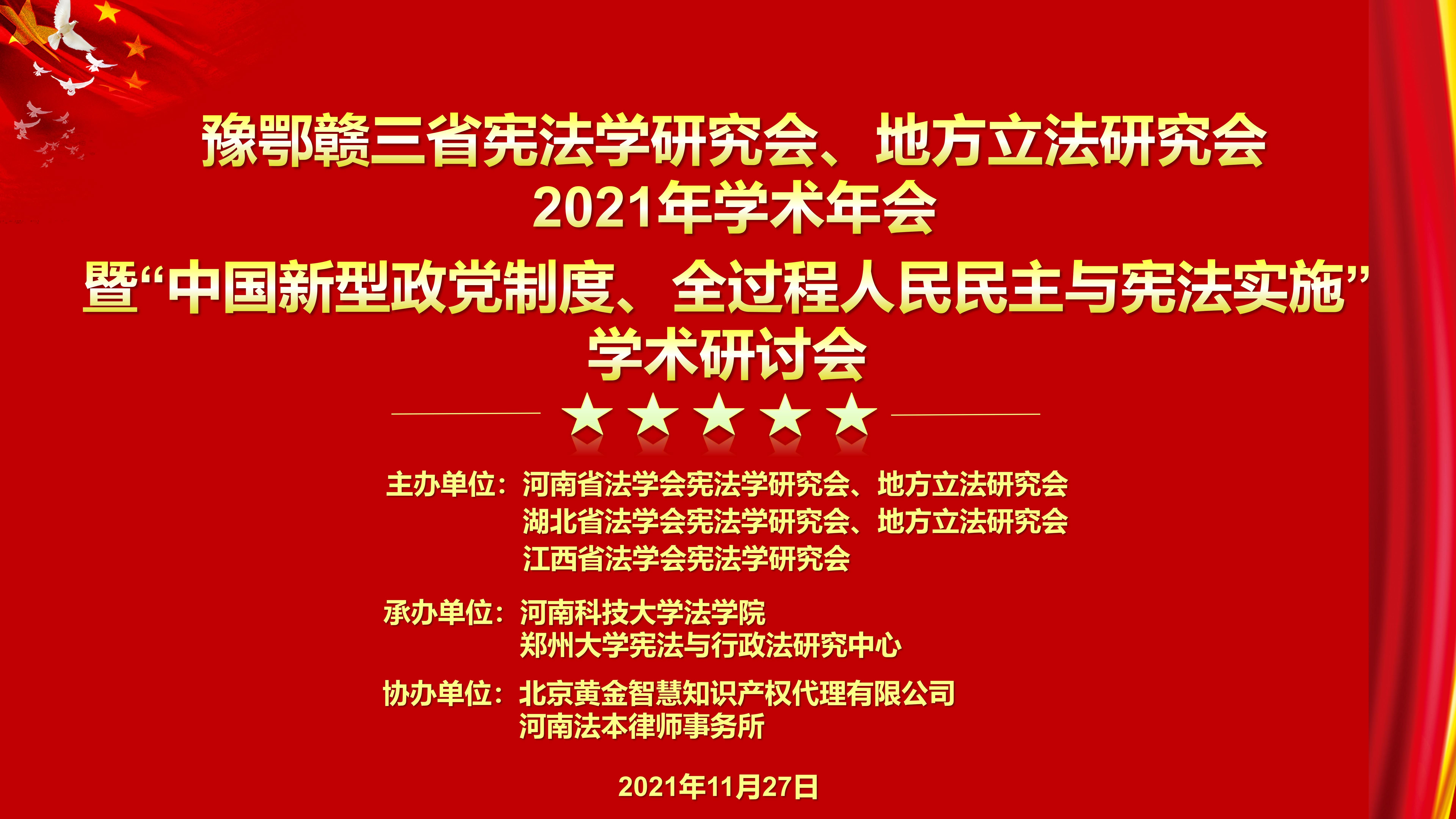 (通讯员荣锦坤)近日,“豫鄂赣”三省宪法学研究会、地方立法研究会2021年学术年会暨“中国新型政党制度、全过程人民民主与宪法实施”学术研讨会在河南洛阳举行。本次会议由河南省法学会宪法学研究会、地方立法研究会,湖北省法学会宪法学研究会、地方立法研究会,江西省法学会宪法学研究会、地方立法研究会主办,河南科技大学成人直播