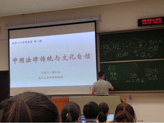 第二期讲座由法制史教研室的柳正权教授主讲,主题是“中国法律传统与文化自信”。柳老师通过对汉字魅力的阐述引出“文化自信”并深刻解题,为法学新生们上了重要一课。