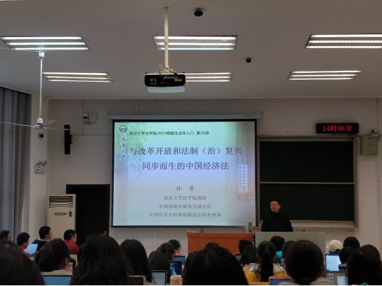 第十期讲座由经济法学教研室孙晋教授主讲,主题是“与改革开放和法制复兴同步而生的中国经济法”。孙老师论证了中国经济法产生的必然性、发展的阶段性、经验与不足,为同学们未来学习经济法提供了宝贵启迪。