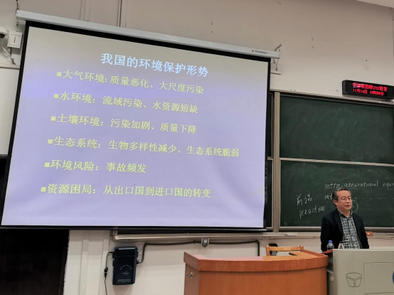 第九期讲座由环境法研究所柯坚教授主讲,主题是“应对环境问题挑战:当下中国的生态文明建设与环境法治递进”。柯老师围绕环境保护形势、生态文明建设、环境法制三个关键词介绍环境法,鼓励同学们为环境法和环保事业做出贡献。