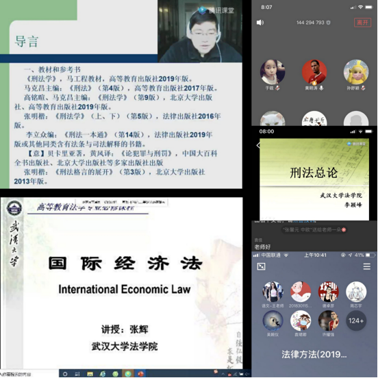 早上8点,《刑法总论》《国际经济法》《英美立宪导论》三门课程分别在腾讯课堂、腾讯会议、QQ群直播等在线软件上准时开课。