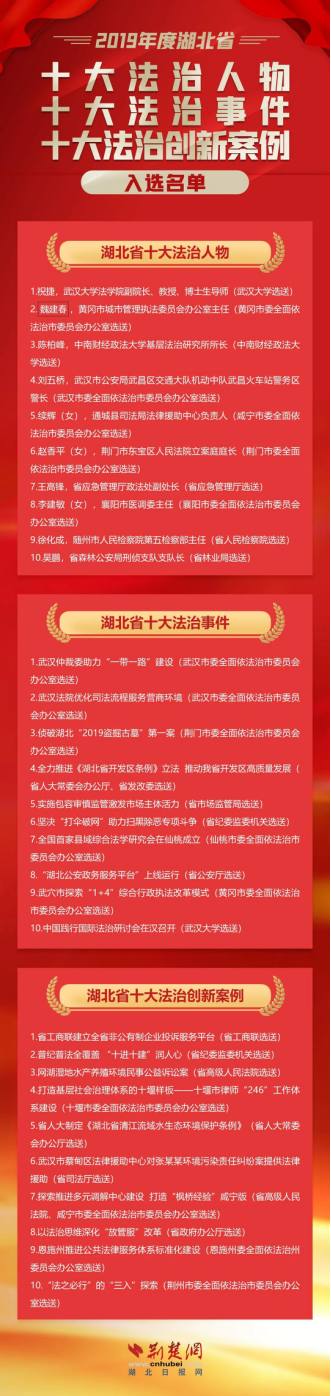 践行法治理念,彰显法治力量。近日,2019年度“湖北省十大法治人物 十大法治事件 十大法治创新案例”名单正式揭晓。成人直播