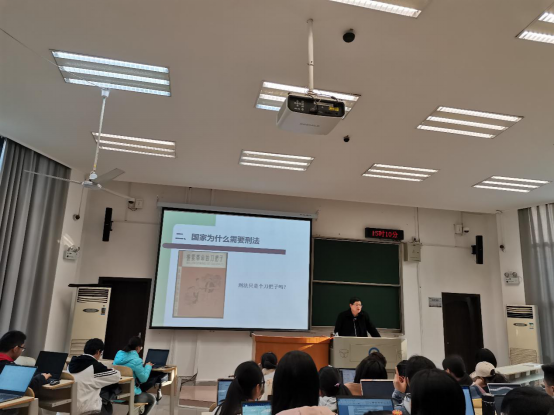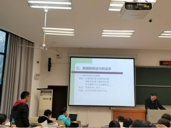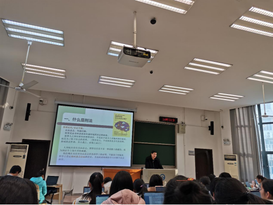 In the lecture, professor Chen Jialin not only narrated the basic knowledge of criminal law to the students, but also conveyed the legal feelings to the students. The lecture stimulated the students' enthusiasm for the study of criminal law, and also responded to the students' doubts about criminal law. At last, the lecture ended successfully in the warm applause of all the students.