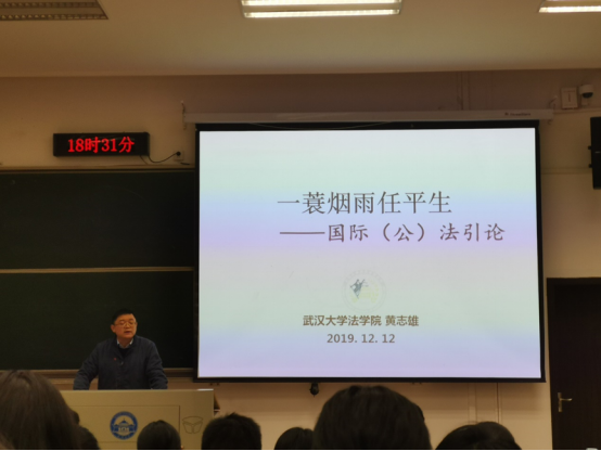 On December 12, the 12th session of the series of introductory lectures on law of Wuhan University hosted by the law school of Wuhan University was held in Room 101, teaching building 4, Ministry of Arts and Science. The theme of the lecture was "An Introduction to public international law". Professor Huang Zhixiong was the lecturer. All 2019 undergraduate students from Wuhan University Law School attended the lecture.