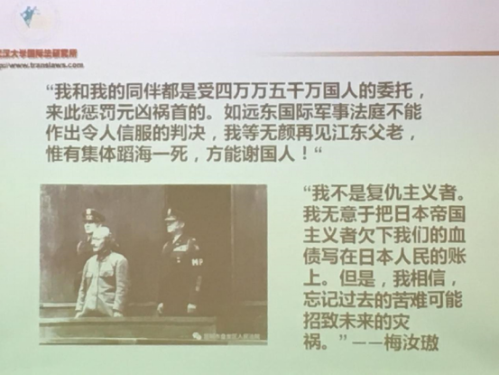 In the development of public international law, jurists played an important role. Grotius was the father of modern international law. His the law of war and peace became the criterion for European countries to deal with international relations in the 17th century. Prof. Zhou Gengsheng studied abroad for more than ten years and wrote the book international law with what he had learned all his life. Prof. Mei Ru’ao served as the chief justice of the International Military Tribunal for the Far East, fighting for our country.