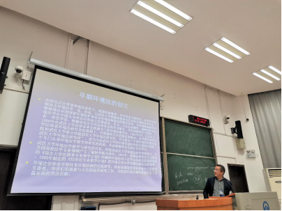 The third part of the lecture was about the development of the theory and practice of environmental legal system in China. The development of environmental law could be divided into two stages. The first stage was that the traditional legal departments had changed to meet the requirements of environmental protection. The second stage was that there were more and more national legislations on natural environmental protection.