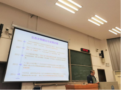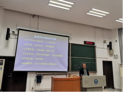 At the beginning of the lecture, Prof.Kejian humorously introduced himself. He said that the main contents of the lecture would include three problems: the challenge of environmental problems and the situation of environmental protection in China, the construction of ecological civilization and Xi Jinping's thought of ecological civilization, and the development of the theory and practice of environmental law in China.