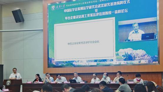 Hu Yunteng, President of the Case Law Research Society of the Chinese Law Society, Liu Shude, Deputy Director of the Trial Management Office of the Supreme People's Court, Li Qunxing, Member of the Party Group and Vice President of the Hubei Provincial Higher People's Court, and Feng Guo, Dean of Wuhan University Law School, jointly inaugurated the Research Base. Afterwards, the experts conducted a seminar on relevant topics.