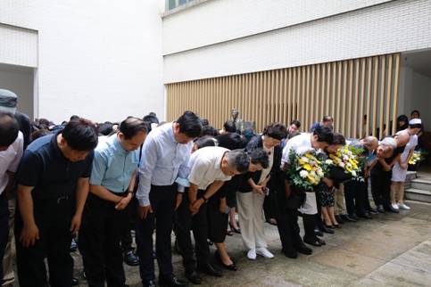 At the beginning of the memorial ceremony, Professor Feng Guo introduced the guests and led the audience to recollect Ma Kechang's extraordinary life history, praised his outstanding contribution to legal education and research in China, inherit and carry forward his academic spirit of "truth-seeking and pragmatism", and make greater contributions to legal research, legal practice and legal education. Ma Xiaohan, Cao Lin, Jia Yu, Professor Xie Wangyuan and Nurse Ye Man, on behalf of their families, disciples and colleagues from all walks of life, laid flowers to Ma Kechang and all staff bowed three times to the bronze statue of Mr. Ma.